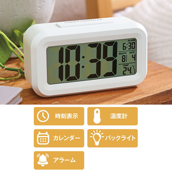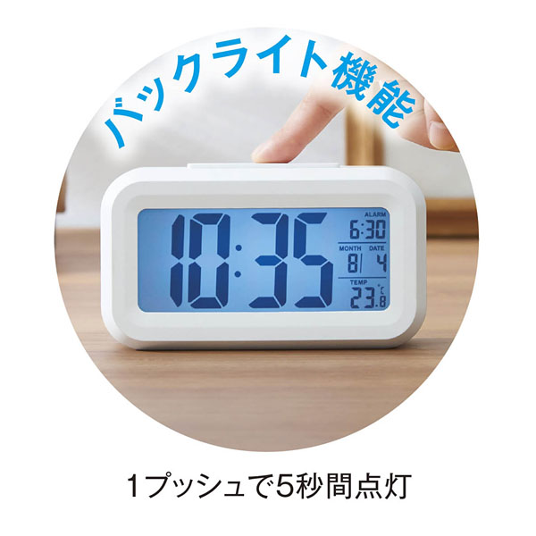 ●機能:時刻表示、カレンダー、アラーム、温度計、バックライト(1プッシュで5秒間点灯) ●単4形乾電池3本使用(別売) ●化粧箱入り |
