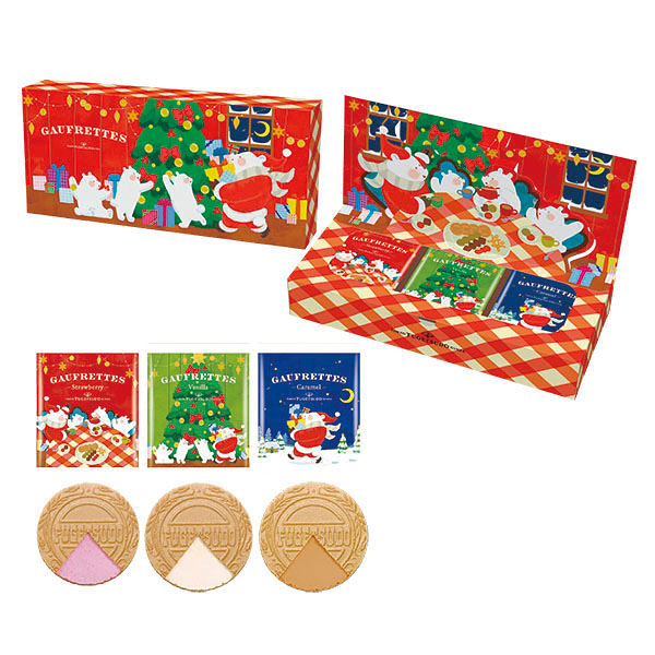 ●クリスマス限定デザインのゴーフレット12枚入の商品です。 ●<セット内容>ゴーフレット12枚(バニラ、ストロベリー、キャラメル×各4枚) ●賞味期限:180日間(常温) ●ポリ袋付き ●化粧箱入り ※ポリ袋は商品と別梱包になる場合があります。 |