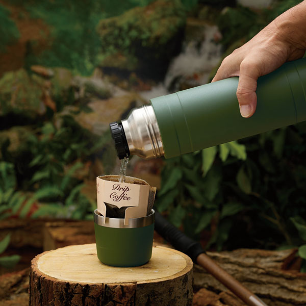 ●真空二重構造で6時間後も85℃以上をキープ! ●コップも真空二重構造と硬質ウレタンでしっかり保冷温。 ●真空層をはさむステンレス面に蓄熱性を高める銅メッキを施すことにより保温力を高めています。 ●内側には錆びにくいSUS304を採用し、さらに汚れが付きにくいセラミック加工を施しています。 ●容量:750ml ●化粧箱入り |