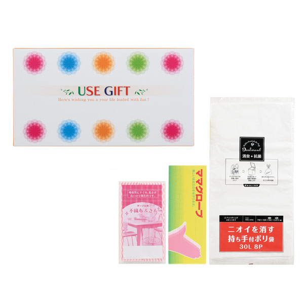 ●セット内容:ママグローブ10P、不織布ふきん3枚、ニオイを消す持ち手付きポリ袋30L 8P×各1 ●日本製 ●化粧箱入 |