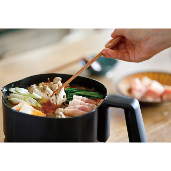 ●食卓で調理して、そのまま食べられ、余ったらフタをしてそのまま冷蔵庫で保存も。1台3役で、コンロや食器、保存容器もいりません。 ●本体を取り外して丸洗いが可能。 ●電源:AC100V(50/60Hz) ●消費電力:1200W ●コード長:約1.8m ●容量:約1L ●化粧段ボール箱入り |
