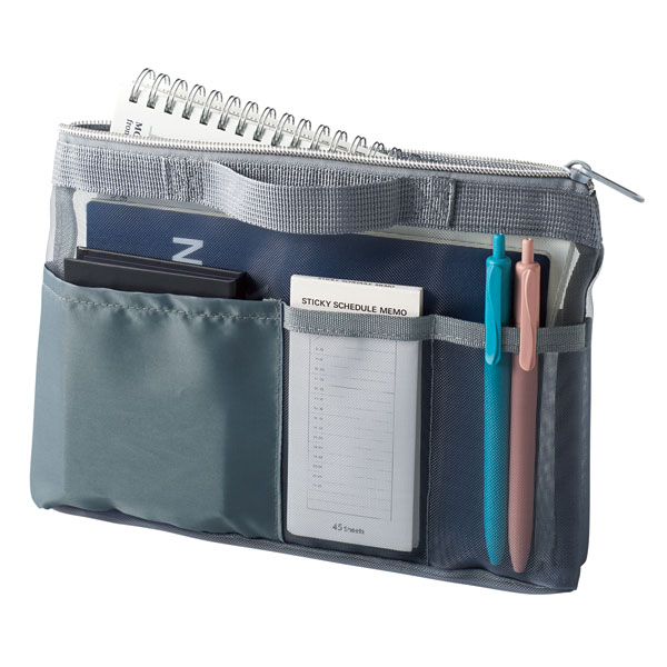 ●中身が見えて確認・取り出しが簡単! ●バッグインバッグとして。 ●収納しやすいマチ付き仕様。 ●A5サイズノート収納可能。 ●3つの内ポケット。目隠しポケット。2つの外ポケット。ハンドル付き。 ●包装袋入り |