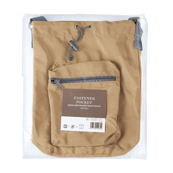 ファスナーポケット付きショルダー巾着ポーチ(撥水加工)