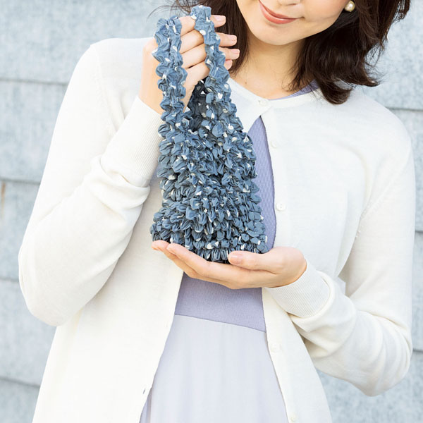 たたまなくても手のひらでクシュっと小さくなる可愛いエコバッグ。