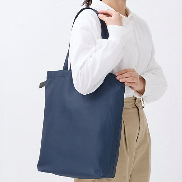 ソフトで優しい再生ポリエステルを100%使用。普段使いから資料配布用にも使えるベーシックなマチ付きトートです。