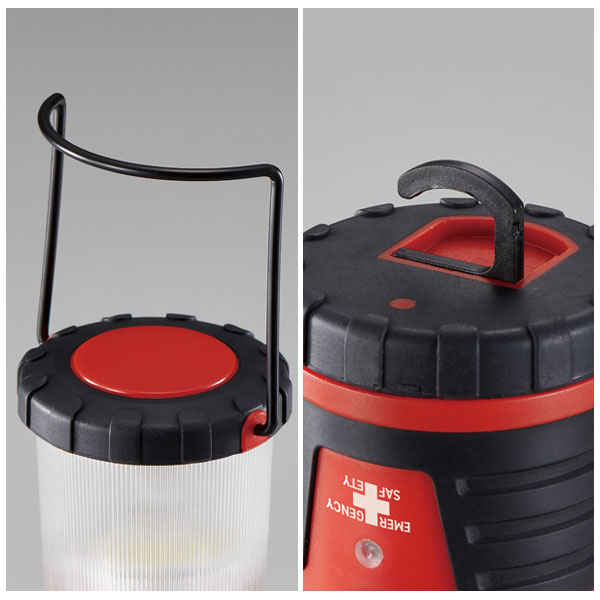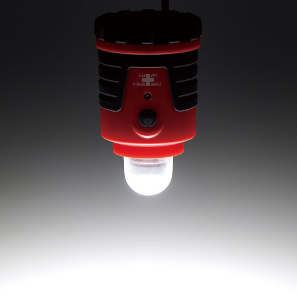 ●カバーを外して吊り下げると、広範囲を照らすことができます。 ●消灯時はパイロットランプが点滅して、暗闇でもライトの場所がわかります。 ●吊り下げ用持ち手 ●底にはフックが収納されています。 ●単三乾電池4本使用(別売) ●重量:166g ●化粧箱入り |