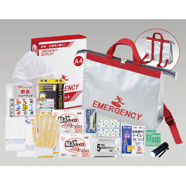 ●セット内容:避難用トートリュック、強力9光ライト、ホイッスル、携帯トイレ2P(2回用)、ウェットティッシュ(20枚入)、ポケットティッシュ、防災ハンドブック、防寒レインコート、軍手、エイトバン(大小×各2)、使い捨てカイロ×2、マスク×2 ―――――――――――――――――― ●地震・災害などで急いで避難する時に、避難場所までの移動を素早く行えるよう「最低限必要と考える防災グッズ」をセットした避難セット。 ●トートバッグとしても。リュックとして背負うことも。 ●体に合わせて調整ができます。 ●A4サイズパッケージ入りで書棚やデスクの引き出しにも収納可能! ●9光ライト:単四乾電池3本使用(別売) ●重量:720g ●F段化粧箱入り |