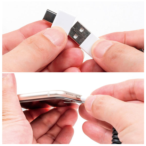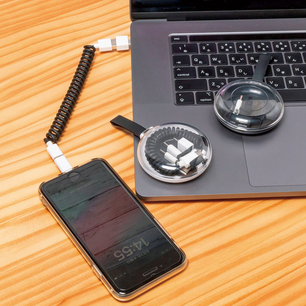 ●3種類の変換プラグ付きで様々なポート形状に対応可能。 ●ケーブルは伸縮性があるコイル状なのでコンパクトに携帯できます。 ●充電出力:5V/2A ●対応ポート形状:microUSB、USB Type-C、Lightning ●重量:約52g ●化粧箱入り |