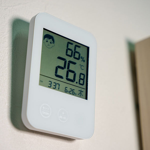今いる空間の熱中症・インフルエンザの危険度を顔マークやアラームでお知らせ。