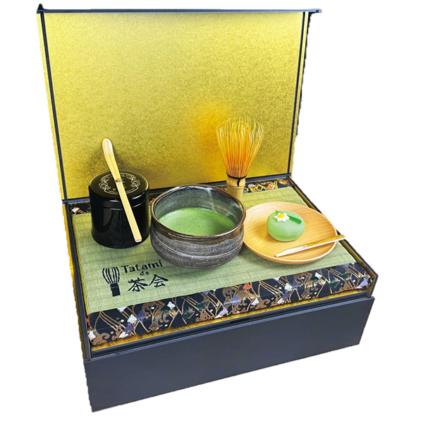 ●セット内容:抹茶碗×1、茶筅×1、茶杓×1、抹茶入り缶×1、畳トレー×1 ●日本製 ●化粧箱入り |