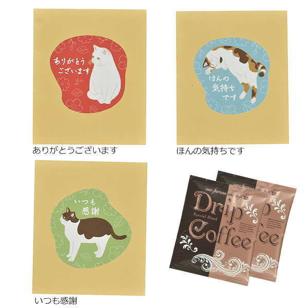 パッケージのかわいい猫がお客様に感謝の気持ちを伝えます。