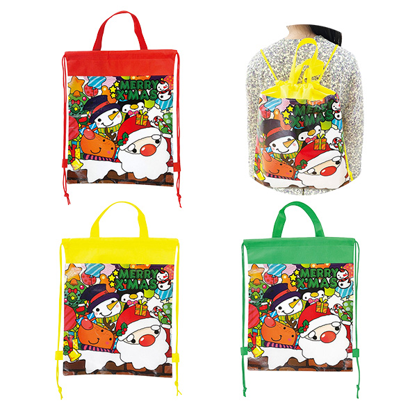 リュックタイプの巾着バッグ。持ち手付きなので手持ちバッグとしても使えます。