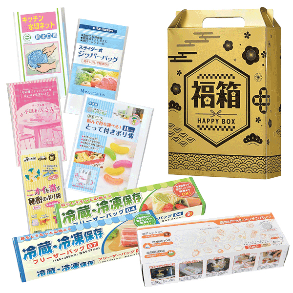 ●セット内容:調理ができるキッチンパックM50枚×1、冷蔵・冷凍保存フリーザーバッグ(厚さ0.4mm)3枚×1、冷蔵・冷凍保存フリーザーバッグ(厚さ0.7mm)3枚×1、消臭袋1枚×1、とって付きポリ袋M1枚×1、水切りネット1枚×1、不織布ふきん1枚×1、スライダー式ジッパーバッグ1枚×1 ●持ち手付福箱入り ※入金確認後出荷まで約3日間かかります。 ※お支払いは銀行振込でお願いいたします。 |