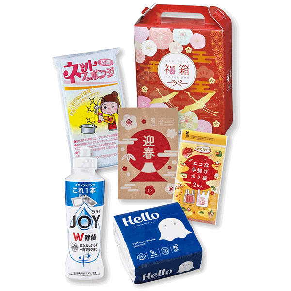 ●セット内容:P&G除菌ジョイコンパクト170ml(さわやか微香)×1、迎春柄紙製水切り袋1枚×1、めでたいエコな手提げポリ袋2枚入×1、ハローハーフサイズソフトパックティシュ180W×1、ネットスポンジ×1 ●持ち手付福箱入り ※入金確認後出荷まで約7日間かかります。 ※お支払いは銀行振込でお願いいたします。 |