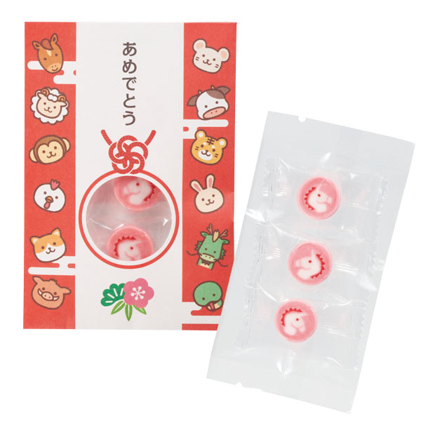 ●お正月らしいデザインのポチ袋入りで、 年始のご挨拶や記念品におすすめです。 ●内容量:飴×3 ●賞味期間:製造日より396日 ●紙袋入り |