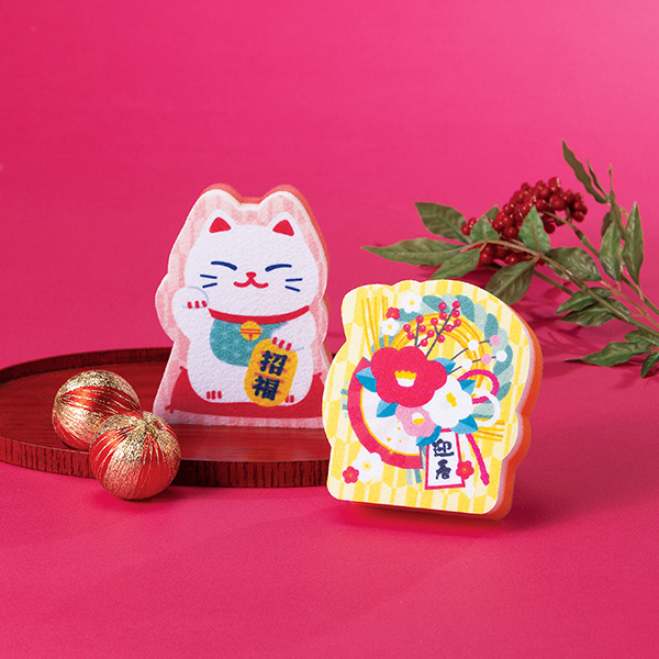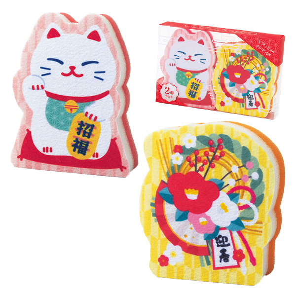 ●初売り・店頭イベント・挨拶回りなどにおすすめです。 ●かわいい招き猫と華やかなお正月飾りのデザイン。 ●ボリュームのある、2層構造のキッチンスポンジです。 ●セット内容:招き猫、正月飾り ●ケース入り |