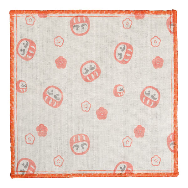 縁起の良いだるま柄をあしらった「開運招福」シリーズのかや織ふきんです。