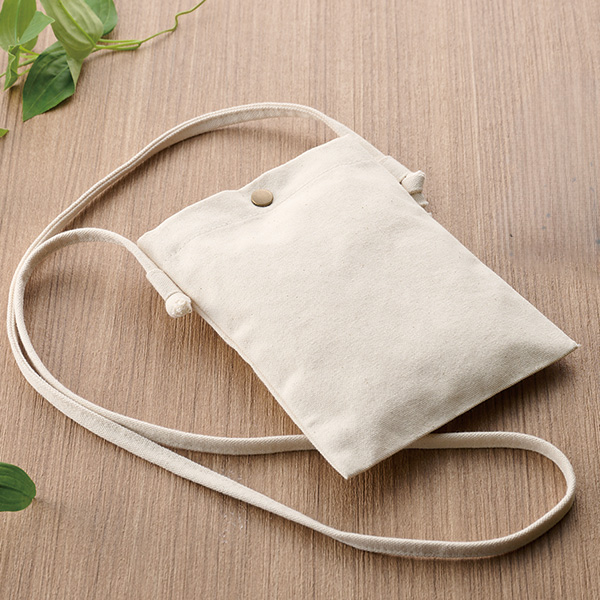 しっかりとした厚手コットン。スマホサコッシュとしてだけでなく、スタッフポーチとしても◎