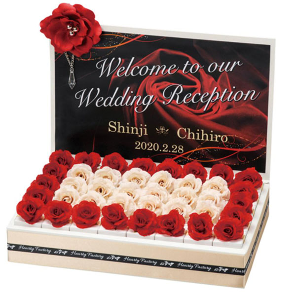 ●セレモニーの間はウェルカムオブジェとして、終了後はセットされたプチギフトでゲストをお見送りできるウェルカムアイテムです。 ●プレートにおふたりのお名前と、挙式日をお入れします。(無料) ●結婚式だけでなく、会社のレセプションパーティや記念行事などにもおすすめです。 ---------- ●セット内容:プチギフト(キラチョコ5個)×40、名前プレート×1、薔薇のオーナメント×1 ●プチギフトの数が足りない場合、追加分の注文も可能です。詳しくはお問い合わせください。 |