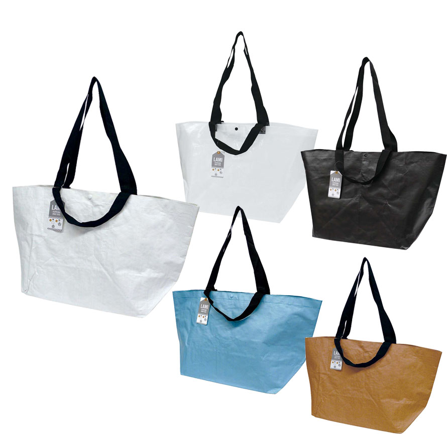 ●たっぷり入って見た目良し。 ●長さの違う持ち手がついていて、2通りの掛け方ができます。 ●水濡れに強く丈夫なPPクロスを使用。(縫製品ですので完全防水ではありません。) ●PP素材を布のように織った生地のPPクロス。 ●生地そのものには約50kg程度の耐荷重があります。 ●プラホック付き ●容量:約31L ●重さ:約112g ●10枚でPE袋入り ※素材の特性上シワや折り目がつきやすく、製品表面にシワが目立つ場合があります。 ※縫製品のため、表記のサイズや重量が実際の製品とは多少異なる場合があります。 |