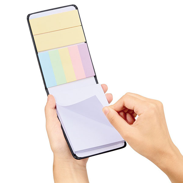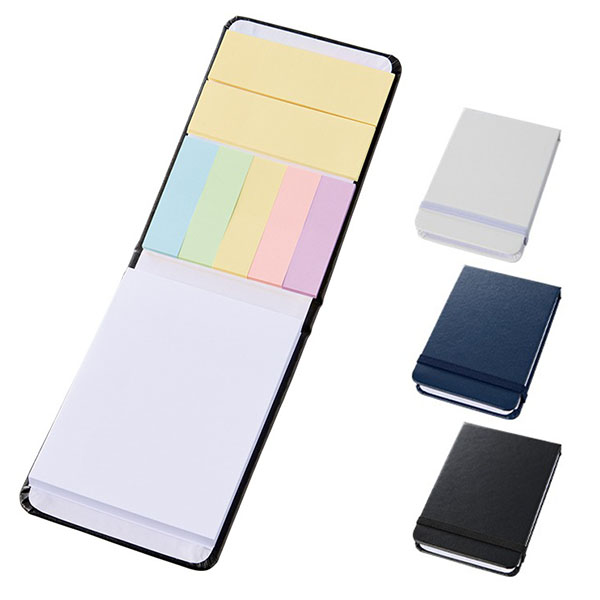 ●中の付箋は便利に使い分けが可能な3サイズがセットになっています。 ●高級感のあるPUレザー生地を使用。 ●ゴム付きでカバンに入れても付箋が折れない。 ●セット内容:大/約75枚、中/約25枚×2、小/各色約25枚 ●OPP袋入り |