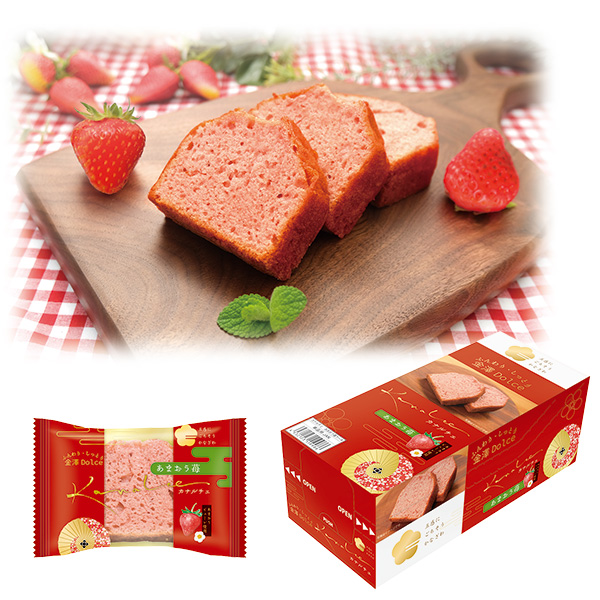 あまおう苺のピューレを使ったしっとりふんわりケーキ。