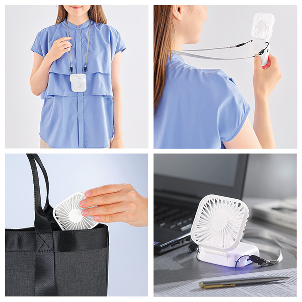 充電式3WAY折りたたみハンディファン(ネックストラップ付き)