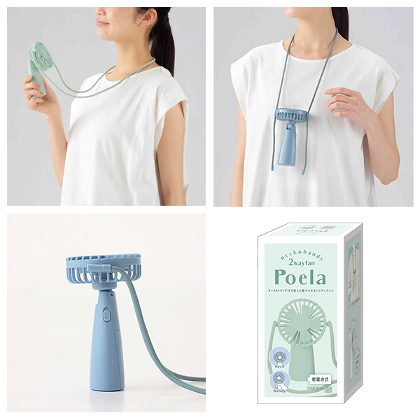 首にかけて・手に持って、2WAYで使える便利なファン。