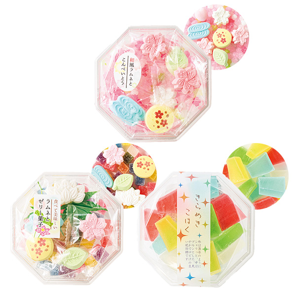 | カラー | ラムネと金平糖 桜、ラムネとゼリー 春、きらめきこはく(指定可:12個単位で) |