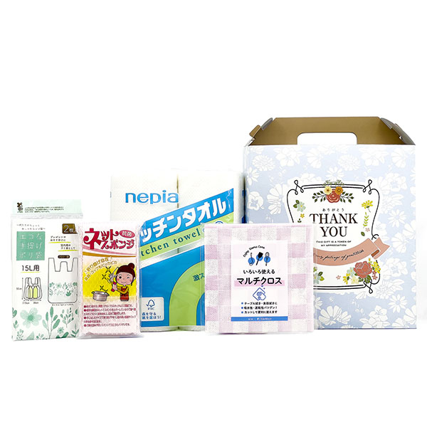 ●セット内容:マルチクロス、ネットスポンジ、激吸収キッチンタオル2R、エコな手提げポリ袋2枚入 ●日本製 ●化粧箱入 ※入金確認後出荷まで約5日間 ※お支払いは銀行振込でお願いいたします。 |