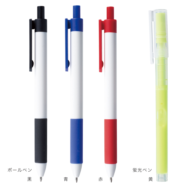 ●セット内容:ボールペン×3色(黒・赤・青)、蛍光ペン(黄色)、ケース ●フルカラー印刷対応 ●化粧箱入り |