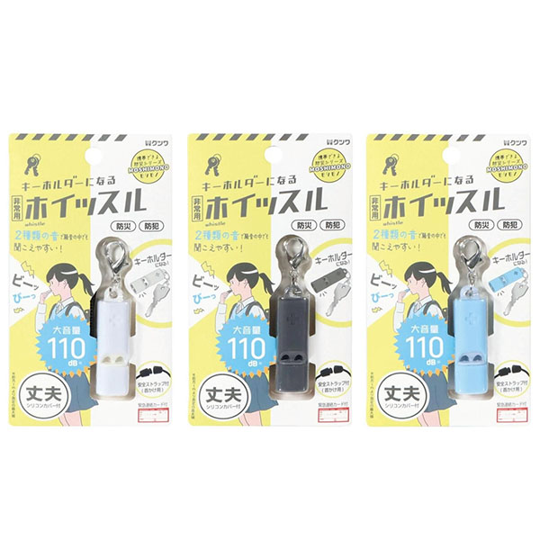キーホルダーになる非常用ホイッスル。
