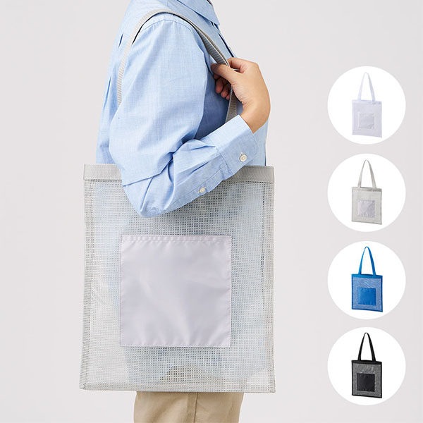 ●レジャーシーンだけでなく普段使いでも! ●大流行中のメッシュバッグで個性をアピール。 ●水に強いポリエステルのメッシュバッグ。 ●フロントにポケット付き ●10枚でPP袋入り |