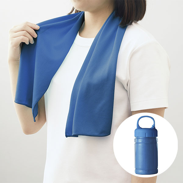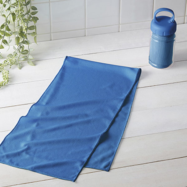熱中症対策に!水に濡らして、絞る・振ると生地温度が下がり、ひんやり気持ちいいタオル。