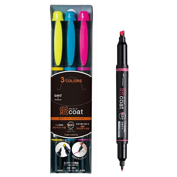 ペン先が強くきれいに使える蛍光マーカー、3色セット。