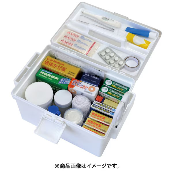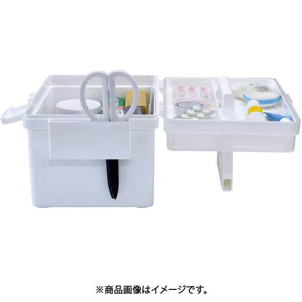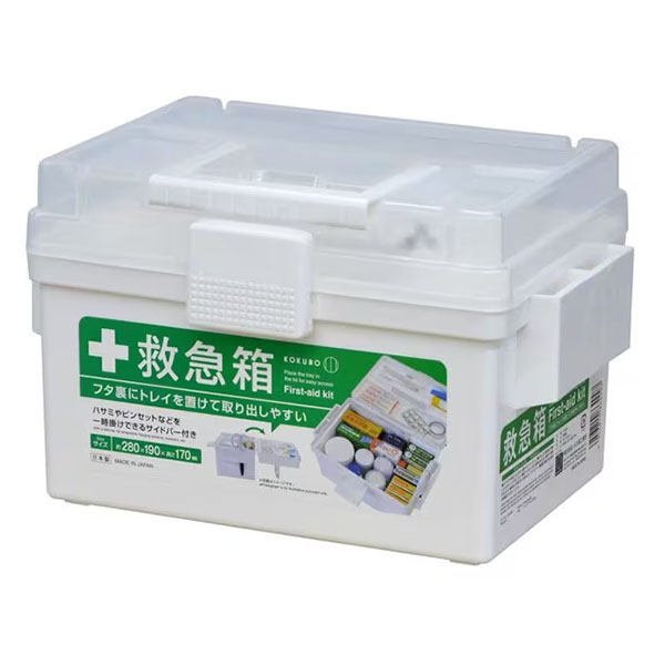 トレイをフタの裏に置くことができ、取り出しやすい救急箱。
