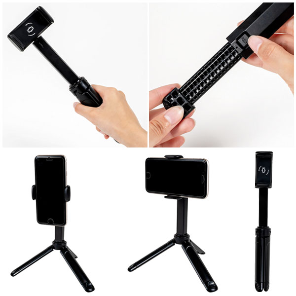 ●スマホをセットして撮影出来る便利アイテム。 ●ハンドル部分は閉じると持ちやすく、開くとスタンドになるすぐれもの。 ●自宅や外出先、旅先での写真や動画の撮影、配信にも活躍。 ●組み立て式 ●重量:約142g ●化粧箱入り |