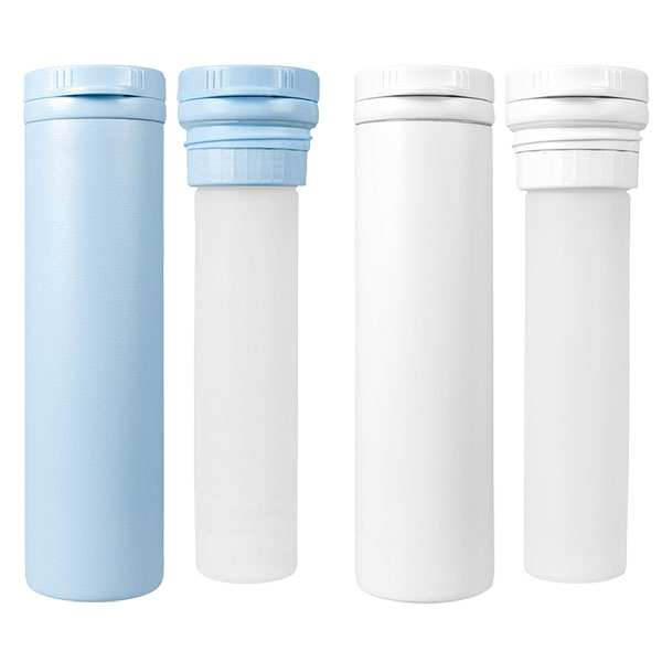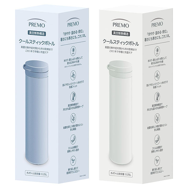●ステンレス製真空二重構造だから保冷用水筒としても利用できます。 ●夏は凍らせて熱中症対策として、冬はお湯を入れることで湯たんぽとしても使用できます。 ●容量:ステンレス製外ボトル約250ml、シリコン製内ボトル約150ml ●保冷効力:9.1℃(6時間後) ●重量:約220g ●化粧箱入り |