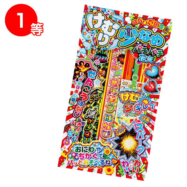 ●セット内容 特賞:けむり少なめ花火KS 1本 1等:けむり少なめ花火200 3本 2等:線香花火 4本 3等:手持ちスパーク 10本 4等:ミラクル5ススキ 32本 ●付属品:抽選くじ×50、抽選箱×1、くじ明細書×1、告知用A4カード×1 ※お支払いは銀行振込でお願いいたします。 |