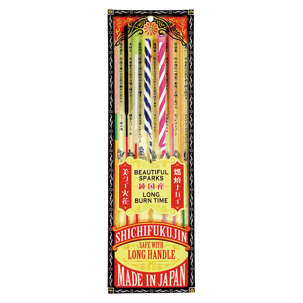 ●燃焼時間も長く、色鮮やかな火花が楽しめる国産花火。 ●内容量:7本 ●種類:手持ち花火 ●日本製 ●花火ルール10ヶ条 1.使用する前に明るいところで注意書をよく読んでから遊びましょう。 2.花火を分解したりほぐしたりしてはいけません。大変キケンです。 3.花火の点火にマッチやライターを使ってはいけません。蝋燭や点火用線香で点火してください。 4.お子様は大人と一緒に遊びましょう。 5.花火は必ず広い場所で遊びましょう。人や家に向けたり、振り回したり、燃えやすい物の側で遊ばないようにしましょう。 6.花火は1本ずつ、風下に向けて点火しましょう。また、花火をしている人の前後に立たないようにしましょう。 7.バケツに水をいっぱい用意しましょう。 8.風の強い日には、花火遊びをやめましょう。 9.花火が途中で消えたり、なかなか点火できない場合でも、絶対に覗いたり顔や体を近づけてはいけません。 10.遊ぶ場所や時間は、他の人の迷惑にならないようにし、花火遊びが終わったら、ゴミは必ず持ち帰りましょう。 |