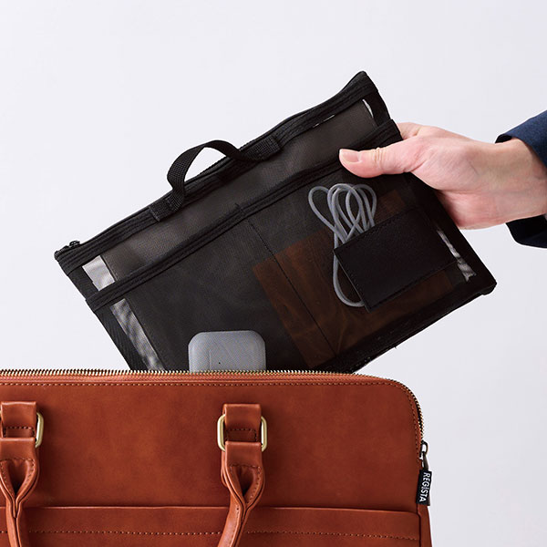 小物を仕分けて収納できる多ポケット、人気のメッシュのバッグインバッグ。