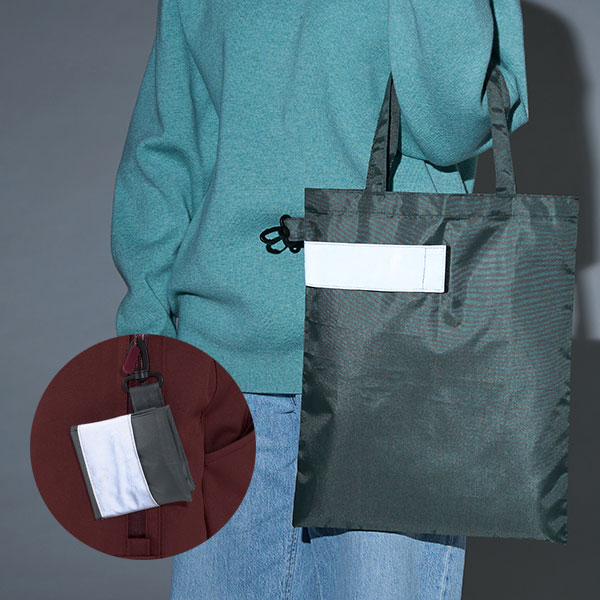 リフレクター付きの軽量なエコバッグ。