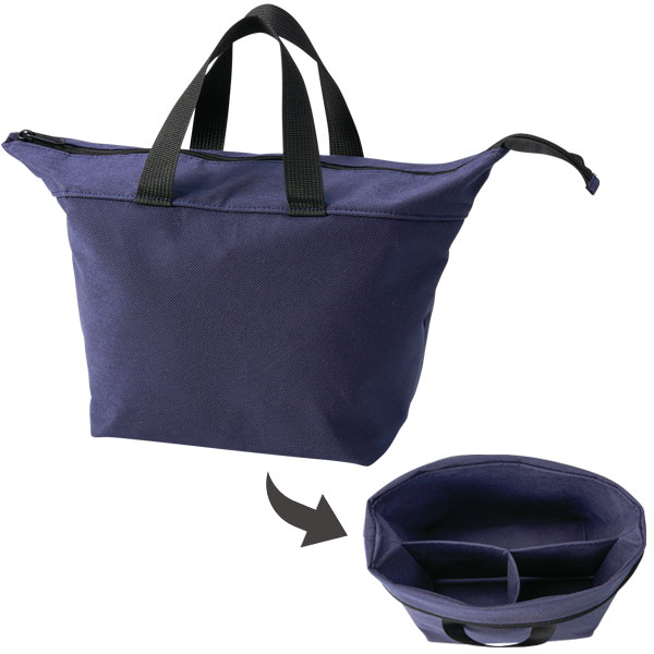 ●トートバッグと収納ポーチの2WAY。 ●3つの仕切りで分別収納。 ●中身を見やすいボックス形状。 ●リビング小物、ガジェット、メイク道具入れとして。 ●包装袋入り |