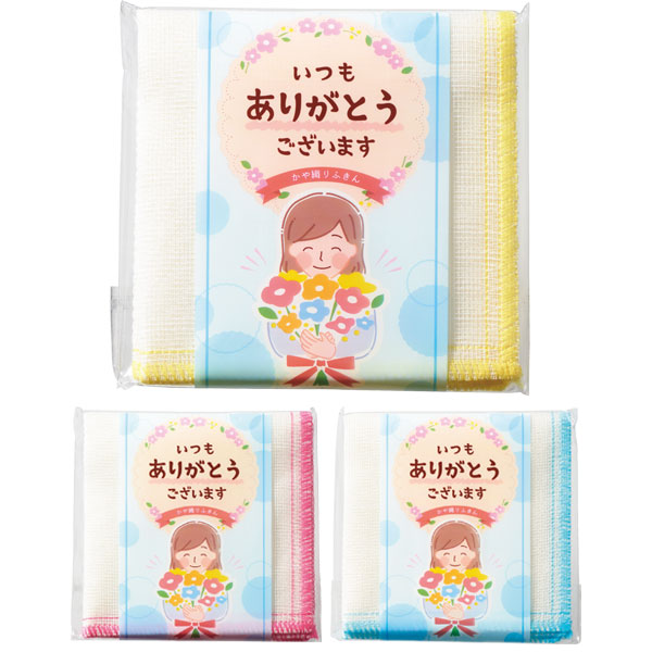 ●家庭で使える販促品の定番かや織りふきん。 ●包装袋入り |