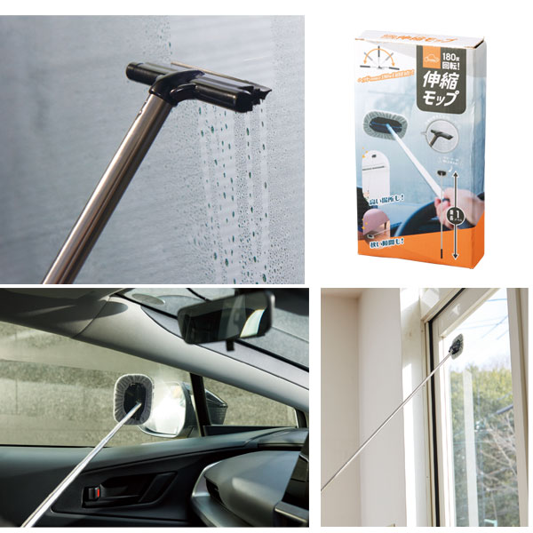 ヘッドが180度回転して柄が伸びる、高所もラクラク拭けるお掃除モップ。