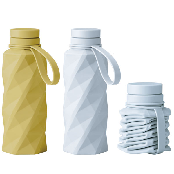 氷のうとして熱中症対策にも使える、ソフトシリコン製のたためるボトル。