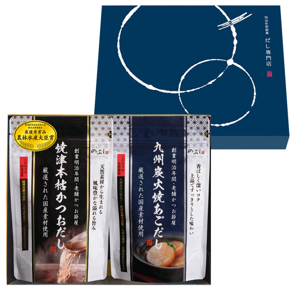 九州産炭火焼あごや焼津産本枯れ節の本格和だしセット。