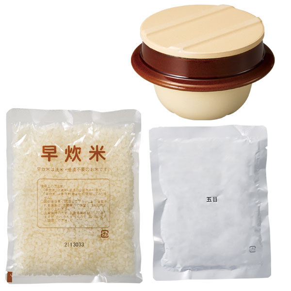 電子レンジで簡単調理。陶器のお釜でおいしく炊ける釜めしセット。
