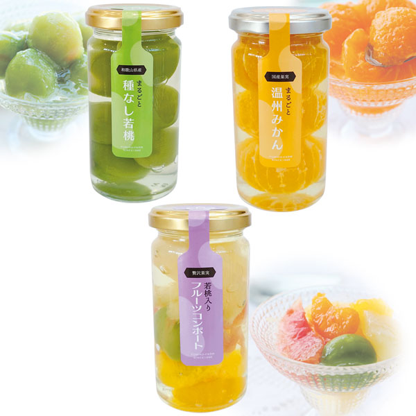| カラー | まるごとみかん、まるごと種なし若桃、若桃入りフルーツ(指定可) |